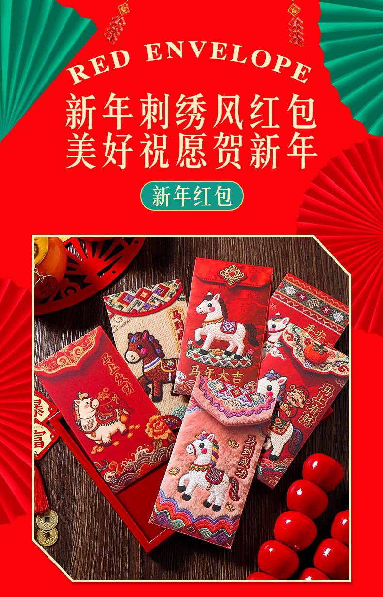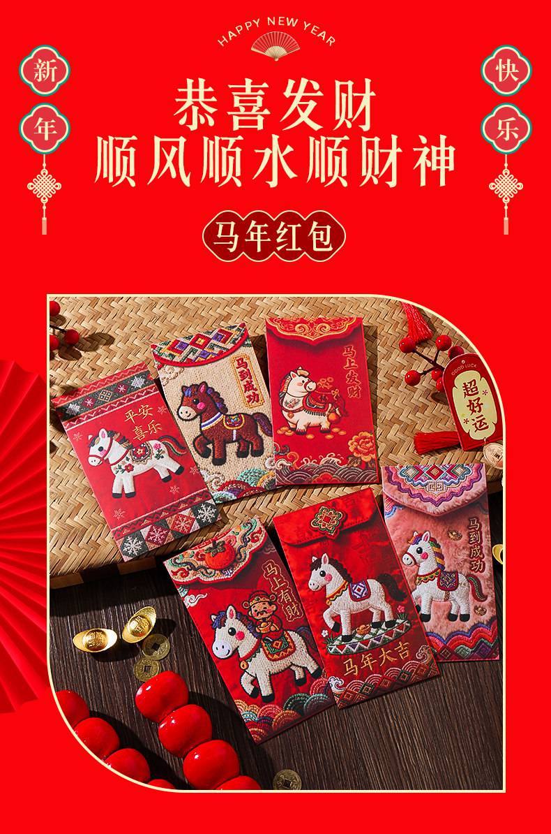 2分鐘前 「2026年爆款🔥」刺繡布藝紅包🧧錦緞材質 + 立體紋樣,一馬當先送福運,長輩晚輩都愛收💗商務 / 婚禮 / 拜年通用~ - 🔥🔥年终大促【5种款式】共60个 NT$1198