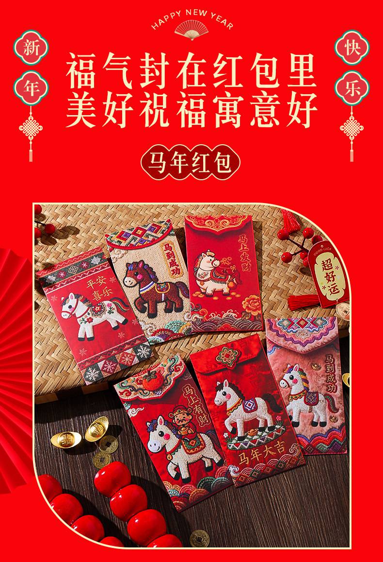 25分鐘前 「2026年爆款🔥」刺繡布藝紅包🧧錦緞材質 + 立體紋樣,一馬當先送福運,長輩晚輩都愛收💗商務 / 婚禮 / 拜年通用~ - 🔥超值体验【5种款式】共30个 NT$899